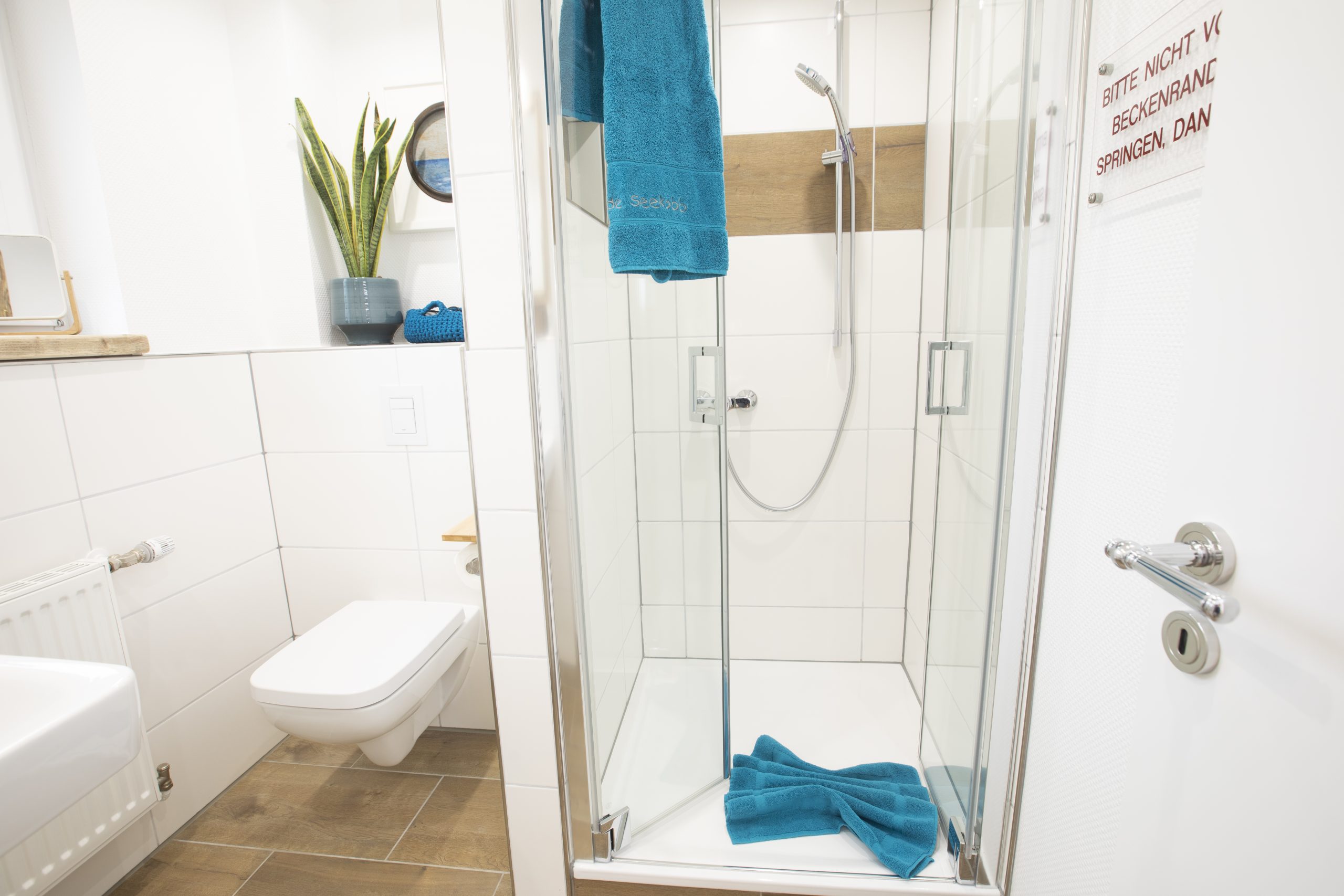 Das großzügige Schlafzimmer mit Doppelbett und Kleiderschrank bietet erholsamen Schlaf, das kleine Wohnzimmer mit Westbalkon eine herrliche Atmosphäre zum Ausspannen. Die Küchenzeile erwartet Sie voll ausgestattet mit Backofen, Kühlschrank, 4 Ceranfeldern, Geschirrspüler, Kaffeemaschine, Wasserkocher, Toaster, hochwertigem Essgeschirr und – selbstverständlich in Ostfriesland nicht wegzudenken – Teeservice für eine gelungene Tee-Zeremonie. Das moderne Badezimmer mit WC, Waschtisch, Dusche, Kosmetikspiegel und Haarföhn vervollständigt Ihr Urlaubsdomizil.